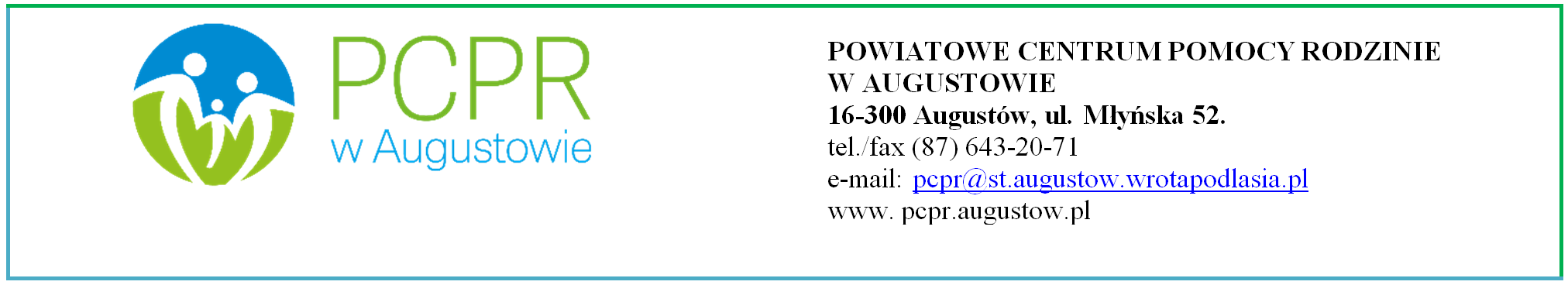 Wnioski w ramach obszarów B, C, D, F i G programu można przesłać lub dostarczyć osobiście do Powiatowego Centrum Pomocy Rodzinie w Augustowie ul. Młyńska 52,